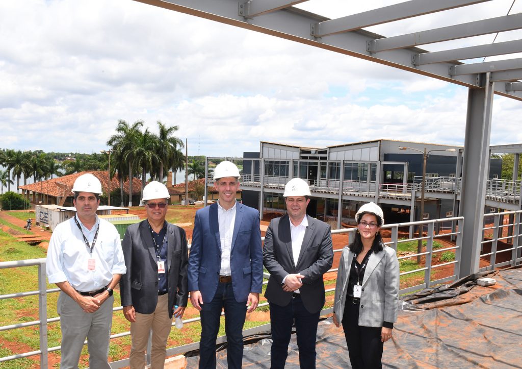 El viceministro de Industria, Marco Riquelme, acompañado por los directores Ejecutivo y Técnico, como así también de los consejeros del Parque Tecnológico Itaipu Paraguay (PTI Paraguay), realizó una visita técnica para verificar el avance de las nuevas oficinas de la sede Tacurú Pucú, en Hernandarias, así como del Centro TASK Paraguay. Estos espacios se proyectan como puntos de encuentro y apoyo estratégico para el sector privado, impulsando la innovación y el desarrollo tecnológico nacional.